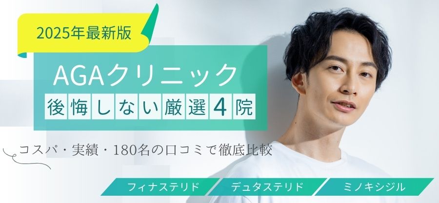 このサイトは実際にAGAクリニックを利用したことのある男性180人にアンケートを実施。AGA治療経験者の生の声に基づいたランキング・口コミをご紹介しています。