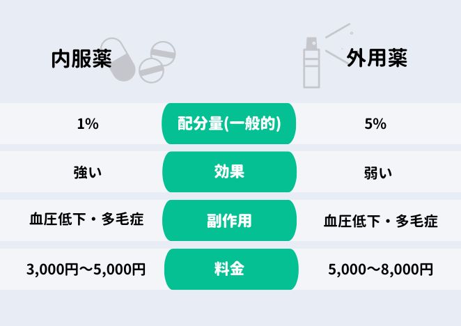 ミノキシジルとは市販の発毛薬にも使用されているほど、AGA治療において有名な治療薬です。AGAクリニックでは、内服薬と外用薬で用意されることが多くあります。