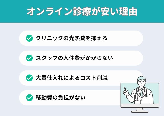AGAクリニックがオンライン診療に対応している場合、店舗の維持費や光熱費・人件費といった諸費用が抑えられるため、通院が必要な対面診療よりも安くなる傾向があるのも事実です。また、患者側にも通院するための交通費や時間の削減といったメリットもあるので、オンライン診療の方が全体でかかる費用は少なくなると言って良いでしょう。